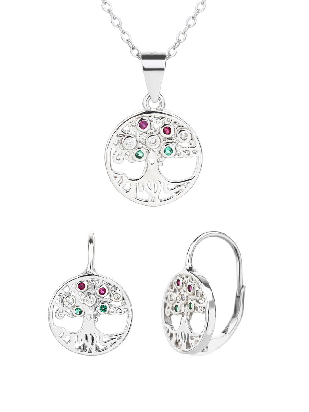 Nemzeti Fény – Trikolor Életfa medál és fülbevaló szett, ródium bevonattal.