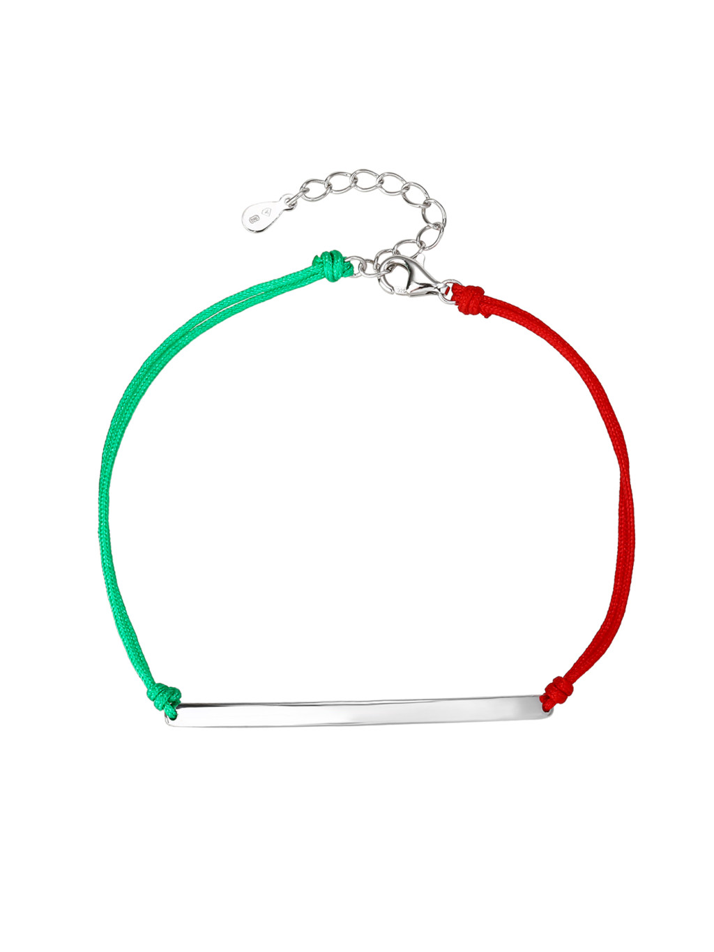 Nemzeti Fény – Trikolor zsinóros-ezüst gravírozható karkötő, ródium bevonattal
